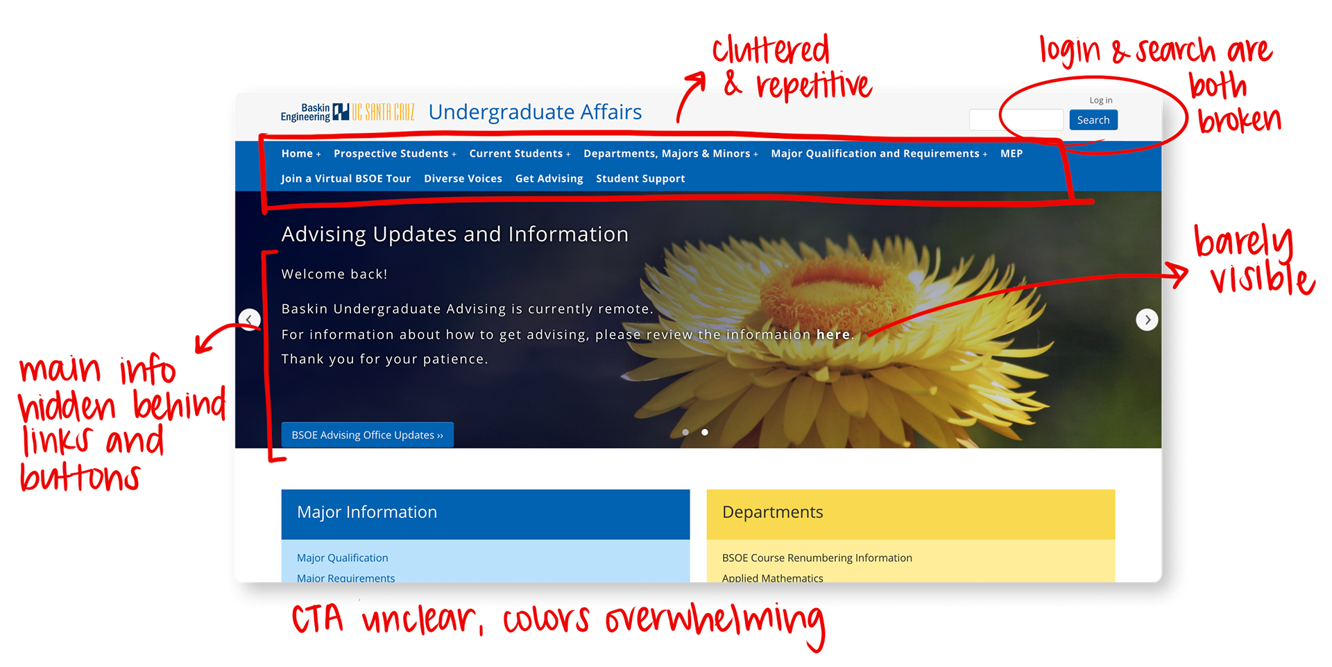 This is the original BSOE website with the stated 3 UX design problems